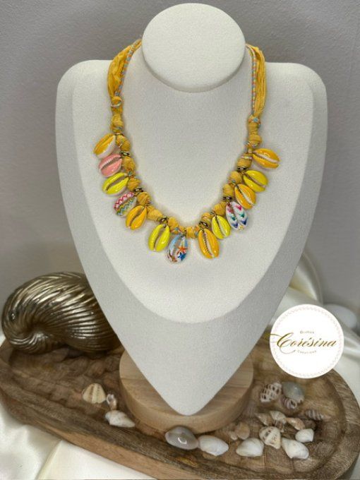 collier Caurie foulard jaune Matière : Acier inoxydable , foulard Taille : 42 cm +5 cm